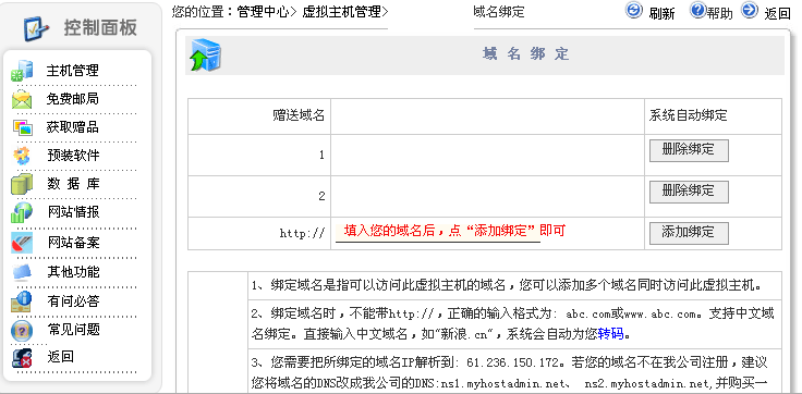 怎么添加二级域名? 如何将域名和虚拟主机绑定... 如何将我的文件上传到服务... 如何用asp的jmail发邮件?... ◆ftp上传时遇到 Socket ... 选择CN域名的七大理由 企业邮局使用指南(新手必... 遇到“服务器内部错误”/... 如何设置OUTLOOK来收发邮... 什么是域名解析? 如何将我申请的英文国际域... 出现“常见错误 不能打开... 如何修改ftp密码? 为什么不加www的域名不能... 关于IIS连接数的几种解释... google推广常见问题 域名注册常见问题解答 [原创]如何清除Sqlserver... 中文域名设置方法介绍 如果查看空间使用了多少?... 为什么我在我的电脑上不能... IP、DNS是什么? 域名知识库 如何用Foxmail来接收企业... 虚拟主机常见问题解答! 网易搜索引擎服务问答 CN域名服务凸现六大优势 什么是电子邮件地址? 主机租用服务需要注意哪些... 新浪搜索引擎服务简介 什么是百度竞价排名服务?... 什么是JSP? 百度竞价排名服务问答 如何远程修复损坏的mysql... 如何连接mysql数据库? 搜狐搜索引擎服务简介 为什么网站有时出现“Ser... 什么是PHP? 百度竞价排名服务的诞生!... 百度竞价排名服务有什么用... 新企业邮局常见问题 ChinaNet与Internet是什么... 如何更有效的过滤病毒/垃... 什么是CGI? 用主机域名浏览到的页面不... 为什么我测试速度时访问双... 什么是整机租用? 什么叫FSO? 如何将我司申请的虚拟主机... 用程序的方式实现url转发... 如何导入MSSQL备份数据? ... 如何管理MySQL数据库? 新的域名到期删除规则实施... 域名选取十技巧 我已经上传了文件可是为什... 中、高端服务器为什么要选... 企业如何选择主机托管服务... 什么叫FSO? 站点占用服务器资源过多的... 名词解释: 域名解析 A记录...本周文章排行